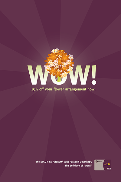 2012 Visa Campaign, Flowers 2012 Visa Campaign, Flowers STCU partnered with Passport Unlimited to offer members discounts with participating merchants when they use an STCU Visa card.